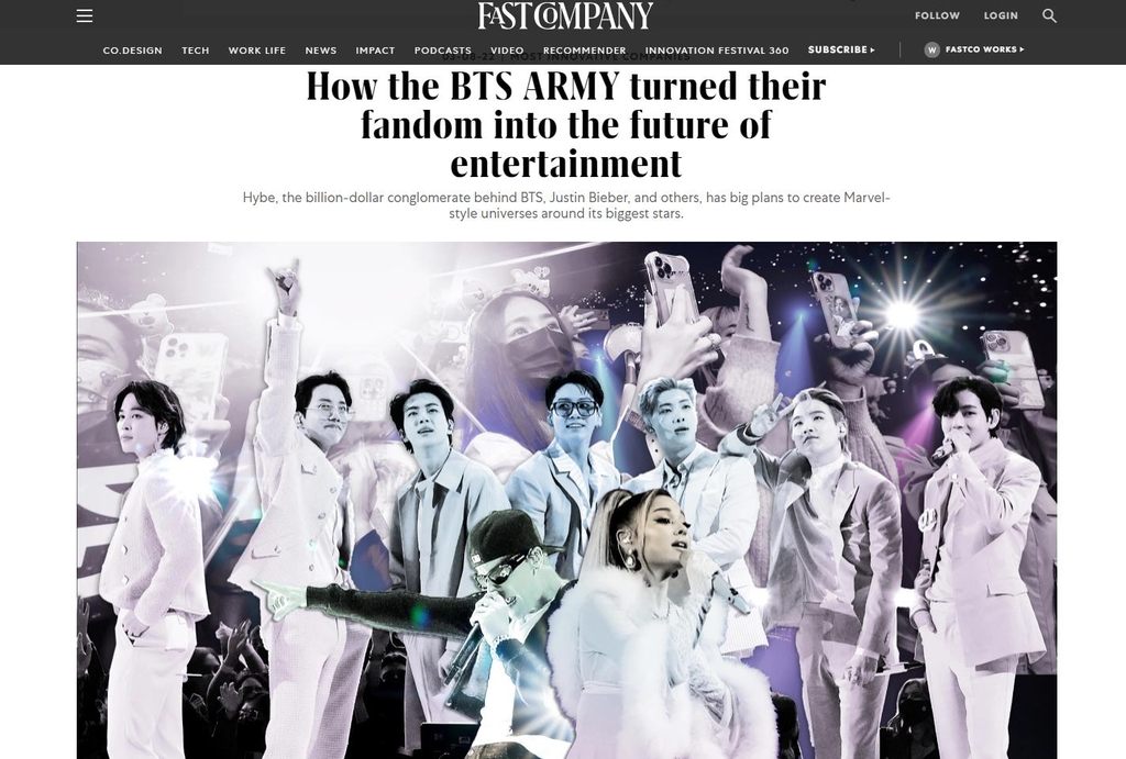 패스트 컴퍼니는 하이브가 국내외 음악 산업에 미친 영향과 변화에 주목했다.