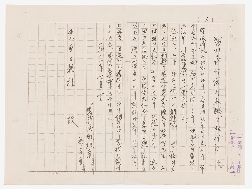| ▲ 참기름 행상이 쓴 편지 [문화재청 제공. 재판매 및 DB 금지] |