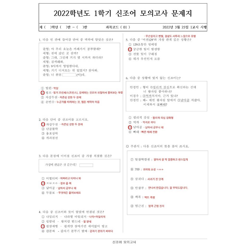 ▲ 신조어 모의고사 답안지 [부산교육청 유튜브 채널 제공. 재판매 및 DB 금지]