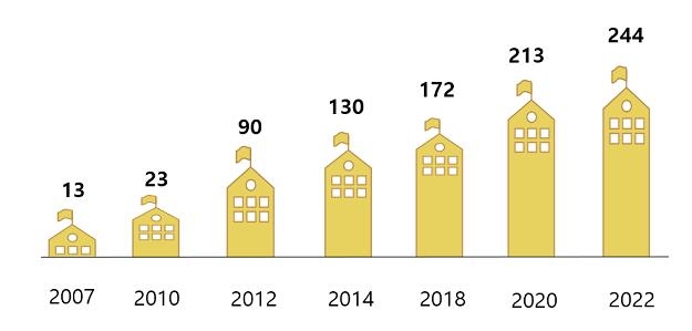 | ▲ 15년간 세종학당 개소 수 증감 [문화체육관광부 제공] |