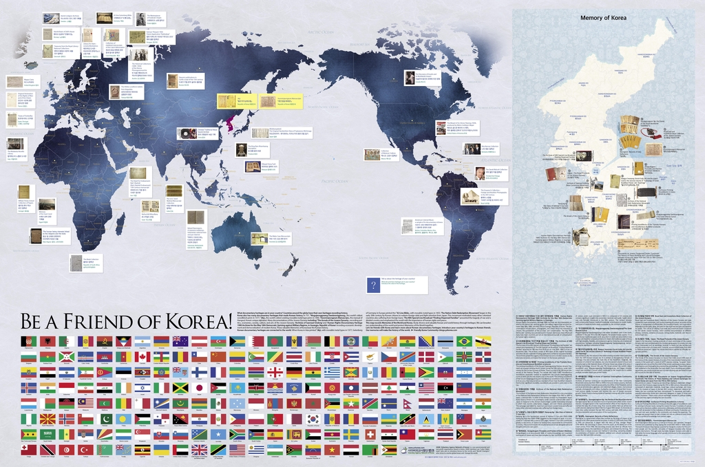 한국은 조선왕조실록을 비롯해 훈민정음(해례본), 직지심체요절(직지), 승정원일기, 고려대장경 경판 및 제경판, 조선왕조 의궤, 동의보감, 난중일기, 일성록 등 유네스코 세계기록유산 16개를 보유하고 있다.