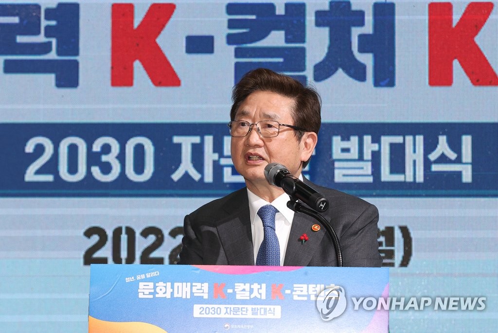 | ▲ 문체부 2030 자문단 발대식 참석해 발언하는 박보균 장관 (서울=연합뉴스) 신현우 기자 = 박보균 문화체육관광부 장관이 5일 오후 서울 용산구 국립극단 소극장 판에서 열린 문체부 2030 자문단 발대식에 참석해 발언하고 있다. 2022.12.5 nowwego@yna.co.kr |