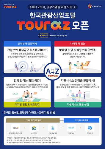 (서울=연합뉴스) 박상돈 기자 = 문화체육관광부와 한국관광공사는 관광산업계의 혁신과 새로운 성장 동력 제공을 위해 관광산업 포털인 '투어라즈'를 공식 개설했다고 19일 밝혔다.