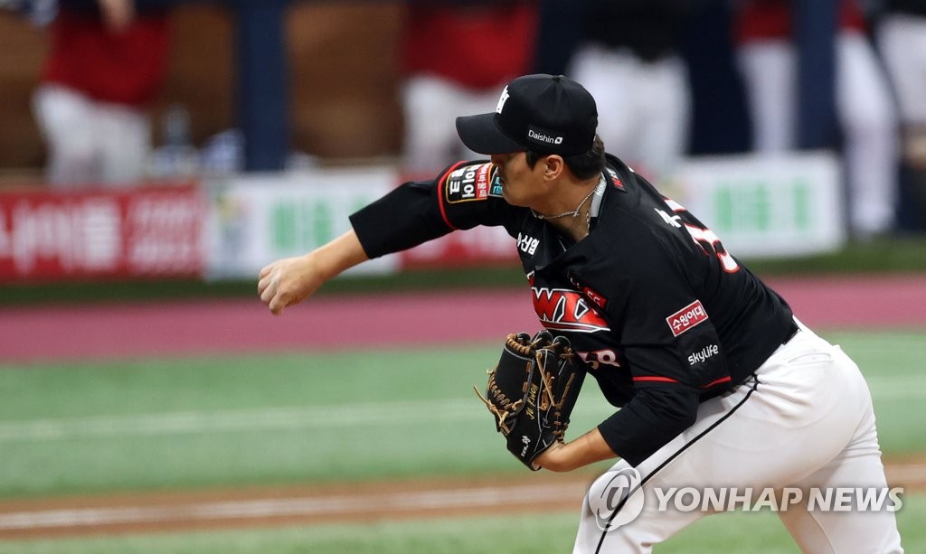 ▲ In this file photo from Nov. 10, 2020, Ju Kwon of the KT Wiz pitches against the Doosan Bears in the top of the seventh inning of Game 2 of the Korea Baseball Organization second-round postseason series at Gocheok Sky Dome in Seoul. (Yonhap)