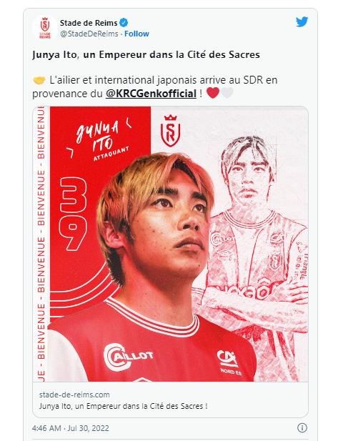 | ▲ 이토 준야의 영입을 발표한 스타드 드 랭스. [스타드 드 랭스 구단 SNS. 재판매 및 DB 금지] |