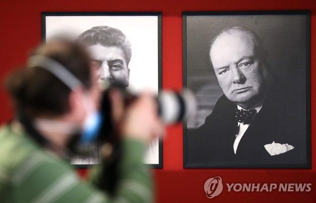| ▲ 지난해 4월 모스크바에 전시된 윈스턴 처칠의 초상사진(오른쪽) [타스=연합뉴스 자료사진] |