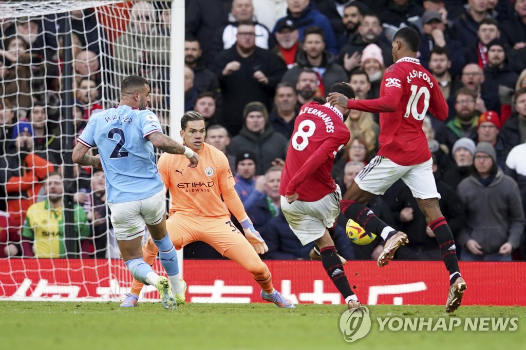 공을 향해 달리는 래시퍼드를 쫓아 맨시티 중앙 수비수 마누엘 아칸지가 다급히 달린 가운데 정작 공은 페널티아크 쪽으로 함께 질주하던 브루누 페르난드스에게 연결됐다.