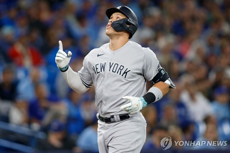 ▲ 홈런 두 방을 터트린 에런 저지 [AFP/게티이미지=연합뉴스]