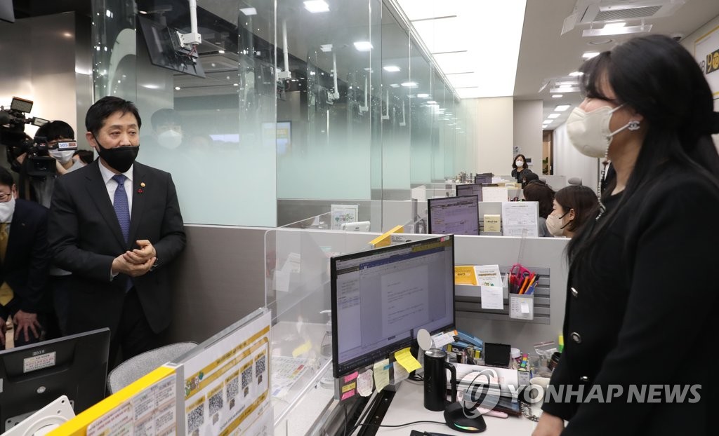 | ▲ 탄력운영 은행 직원들과 인사 나누는 금융위원장 (서울=연합뉴스) 서대연 기자 = 김주현 금융위원장이 5일 오후 은행 탄력점포 현장 점검을 위해 방문한 서울 중구 KB국민은행 남대문종합금융센터에서 직원들과 인사를 나누고 있다. 2023.1.5 [공동취재] dwise@yna.co.kr |