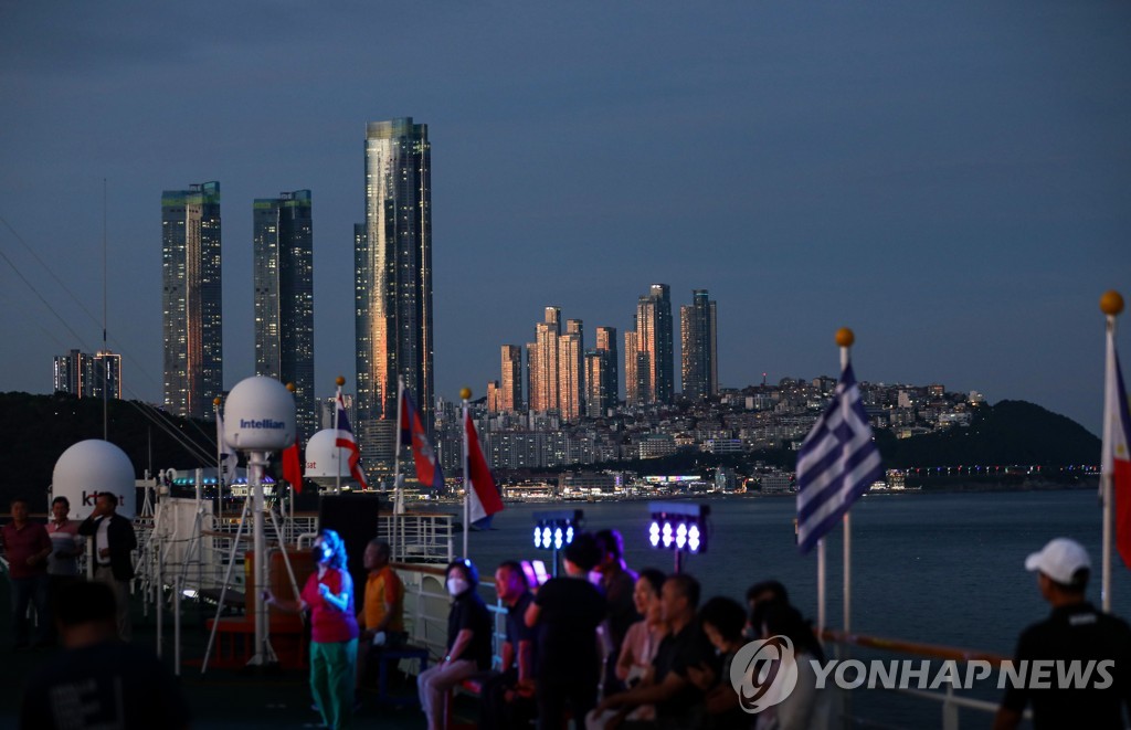 | ▲ 부산 해운대와 달맞이 고개 팬스타 원나잇크루즈에서 촬영한 해운대, 달맞이고개, 블루라인파크 철길. [연합뉴스 자료사진] |