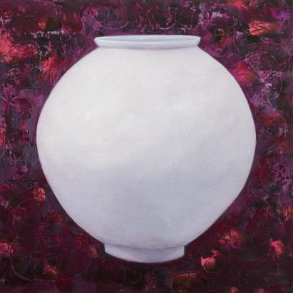 평면 회화로 표현한 달항아리는 작가에게 지적 판타지와 꿈, 아름다운 시간을 소환하는 매개체다. 달항아리의 조형적 특징을 회화로 나타내면서 항아리에 부여된 감성적 이미지 표현에 초점을 맞췄다. 배경은 가시적 세계와 비가시적 세계를 연결하는 추상적인 화면으로 구성했다. 오는 24일까지.