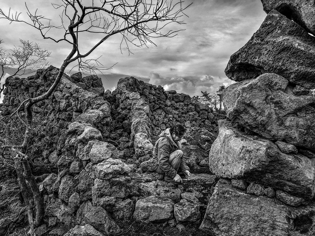 돌챙이로 활동하던 조 작가는 돌 일 하러 오가는 길에 보이는 밭담, 돌챙이들이 함께 돌쌓는 모습, 마을 돌담 풍경들과 같은 일상 속 순간을 카메라로 꾸준히 기록했다.