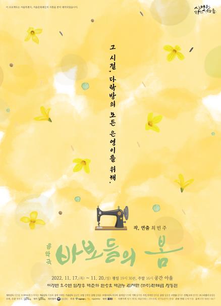 ▲ 음악극 '바보들의 봄' = 1970년대 청계천에서 일하던 여공들의 삶을 그린 음악극 '바보들의 봄'이 오는 17∼20일 서울 대학로 공간 아울에서 공연된다.