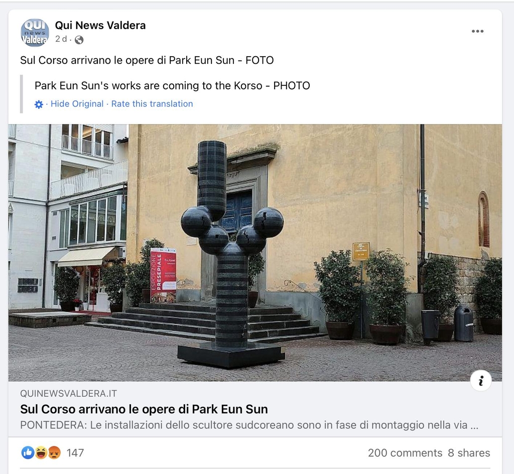 | ▲ 현지 신문에 소개된 박은선 작가 작품 [출처:Qui News Valdera. 재판매 및 DB 금지] |