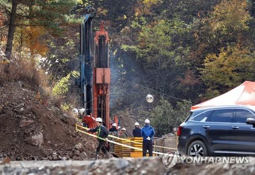 | ▲ Rescue workers drill a hole to reach two miners trapped inside a zinc mine in Bonghwa, southeast South Korea, on Oct. 31, 2022. (Yonhap) |