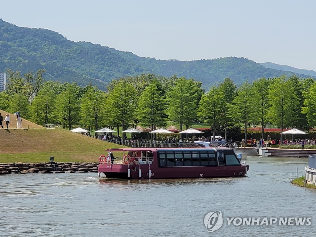 (순천=연합뉴스) 장덕종 기자 = "동천 뱃길 따라 순천만정원박람회 푸른 잔디 광장과 아름다운 꽃밭 즐겨요."