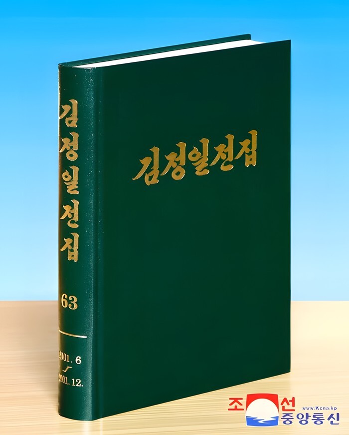 This photo released by North Korea's official Korean Central News Agency on Jan. 17, 2025, shows the recently published volume 63 of the "Complete Collection of Kim Jong-il's Works," a chronological compilation of the late North Korean leader's achievements. (For Use Only in the Republic of Korea. No Redistribution) (Yonhap)