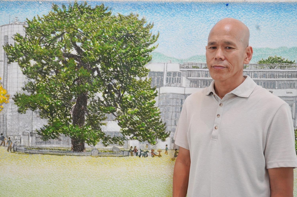김창수 화가는 27일 "기쁠 때나 힘들 때 항상 변함없이 자리를 지킨 수성송을 바라보고 있으면 힘이 난다"며 "시간의 흐름에 따라 변화하는 수성송과 변화 속에서도 수성송이 가지고 있는 생명의 본질을 그려보고자 했다"고 말했다.
