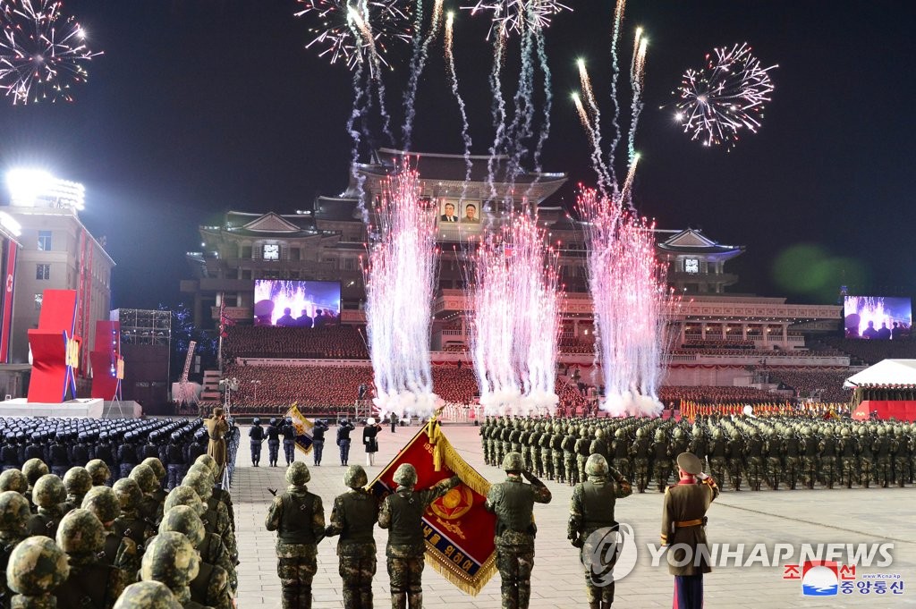 SEOUL, Feb. 9 (Yonhap) -- North Korean leader Kim Jong-un attended a nighttime military parade in Pyongyang earlier this week to mark the 75th founding anniversary of its armed forces, photos carried by state media showed Thursday.