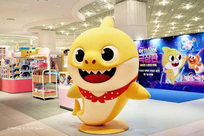 ▲ 핑크퐁 아기상어, 현대百 판교점 팝업스토어 = 더핑크퐁컴퍼니가 '아기상어 극장판 : 사이렌 스톤의 비밀' 개봉을 기념해 현대백화점 판교점 5층에 팝업스토어를 열었다.