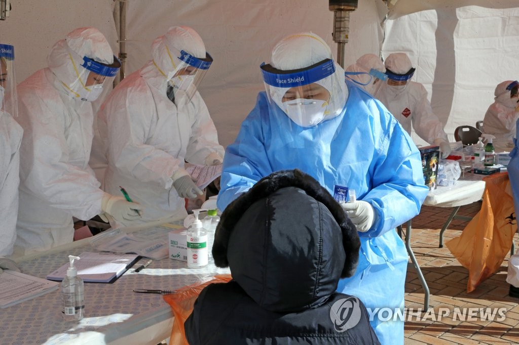 | ▲ 검체 채취하는 의료진 (포항=연합뉴스) 손대성 기자 = 2021년 1월 6일 오후 경북 포항시청 앞에 설치된 임시 선별검사소에서 시 공무원 등이 신종 코로나바이러스 감염증(코로나19) 검사를 받고 있다. 2021.1.6 sds123@yna.co.kr |