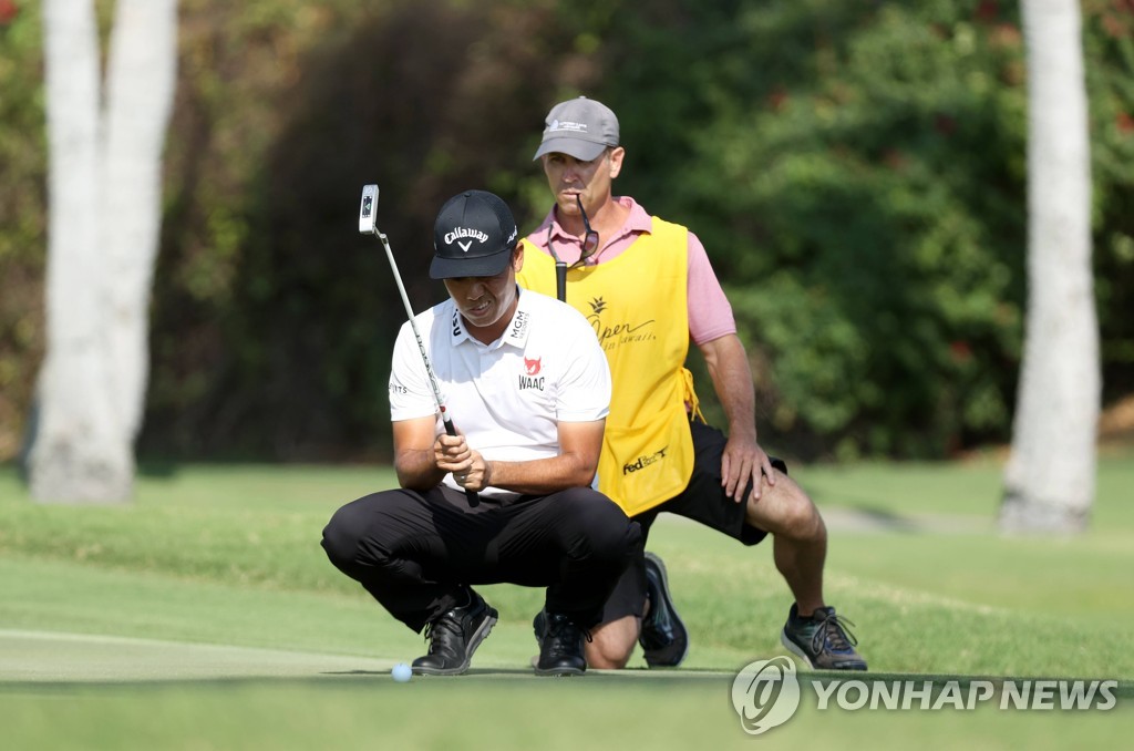 | ▲ 최종 라운드 경기 중 그린 살피는 케빈 나 [게티이미지/AFP=연합뉴스] |