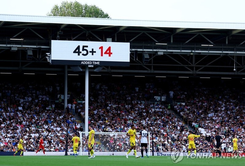 | ▲ 풀럼과 셰필드 경기에 나온 추가 시간 14분을 알리는 전광판 [로이터=연합뉴스] |