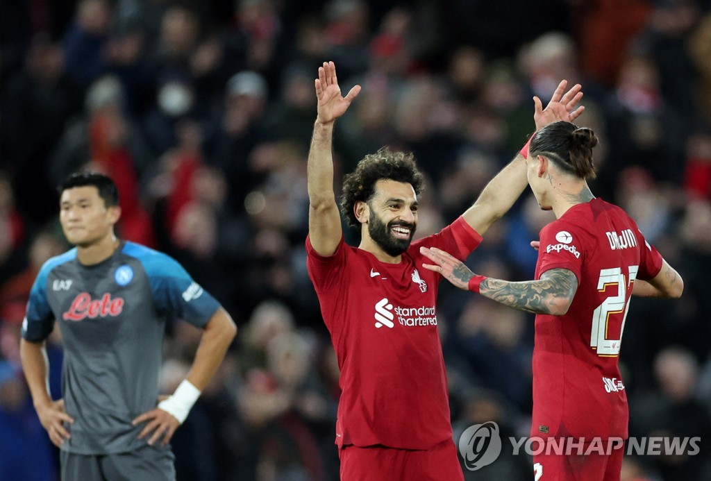 | ▲ 나폴리전에서 기뻐하는 살라흐, 누녜스와 아쉬워하는 김민재(오른쪽) [로이터=연합뉴스] |