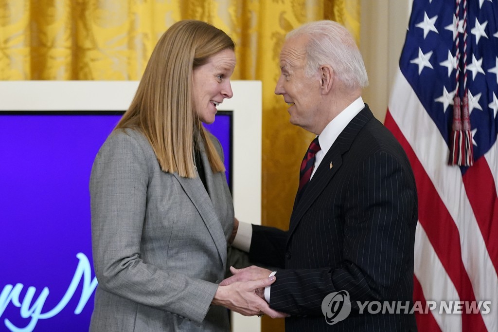 | ▲ 지난 3월 신디 팔로 콘 미국축구협회 회장(왼쪽)과 조 바이든 대통령(오른쪽) [AP=연합뉴스] |
