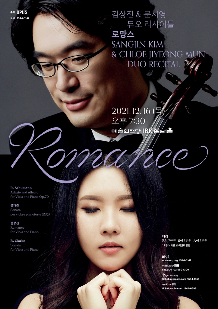 ▲ 김상진-문지영 듀오 리사이틀 = 비올리스트 김상진과 피아니스트 문지영이 다음 달 16일 오후 7시 30분 서울 예술의전당 IBK챔버홀에서 '로망스'를 주제로 듀오 리사이틀을 연다.