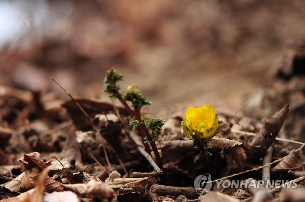 노란 복수초 경주국립공원서 활짝…추운 날씨에 일주일 늦어