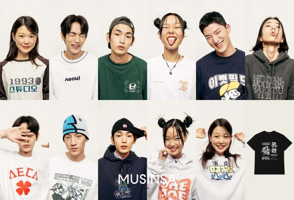 무신사는 노앙, 로맨틱크라운 등 11개 브랜드와 손잡고 로고와 그래픽 등을 한글로 디자인한 티셔츠와 모자 등 협업 상품 40종을 한정 발매한다.