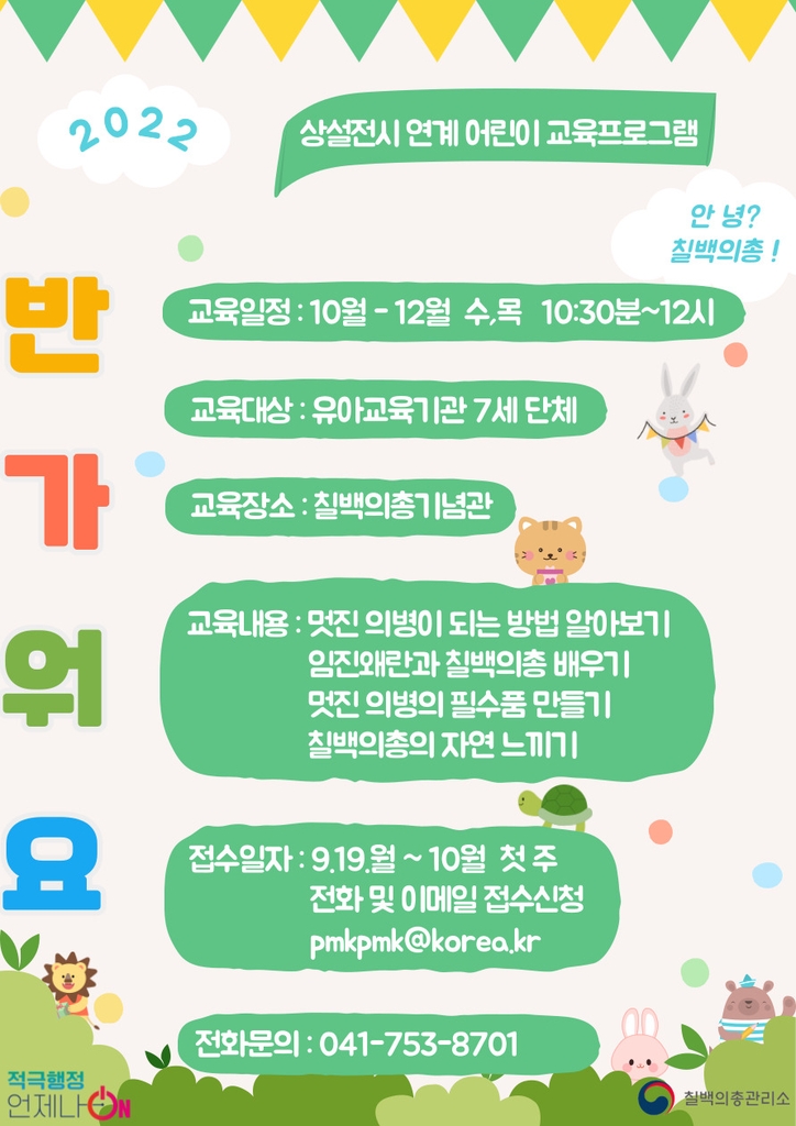 미취학 어린이들에게 임진왜란 당시 칠백의병의 애국정신을 가르쳐주는 프로그램이다.