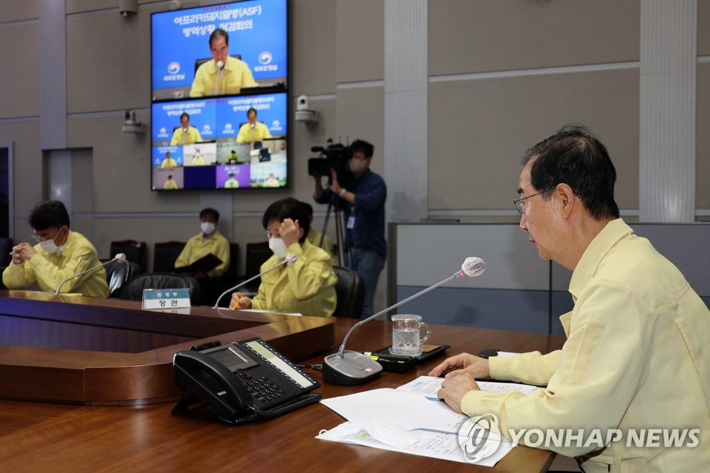 SEOUL, Aug. 19 (Yonhap) -- Prime Minister Han Duck-soo on Friday called for vigilance in efforts to contain the outbreak of African swine fever, a day after officials reported this year's second case of the virus, which is deadly to pigs but not harmful to humans.