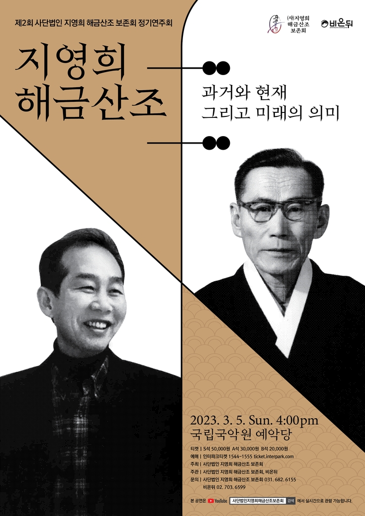 ▲ 지영희 해금산조 보존회 정기연주회 = 지영희 해금산조 보존회는 3월 5일 국립국악원 예악당에서 제2회 정기연주회 '지영희 해금산조 - 과거와 현재 그리고 미래의 의미'를 개최한다.