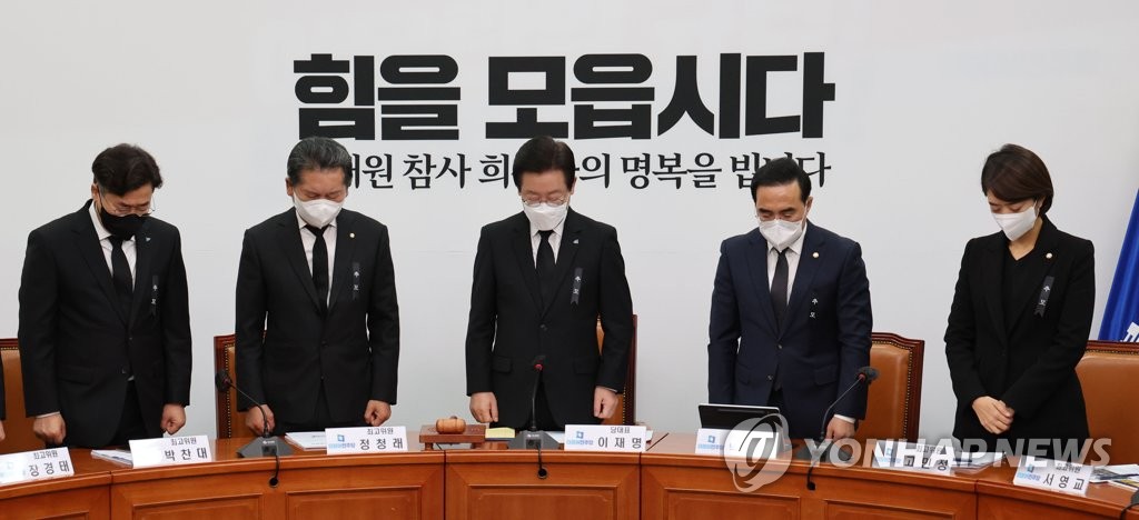 "We will work hard with hope that people suffering from the tragedy can heal up fast and restore their mental peace," DP leader Lee Jae-myung said.