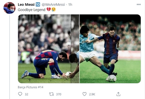 | ▲ 별세한 마라도나 추모한 메시 [메시 트위터 캡처. 재배포 및 DB 금지] |