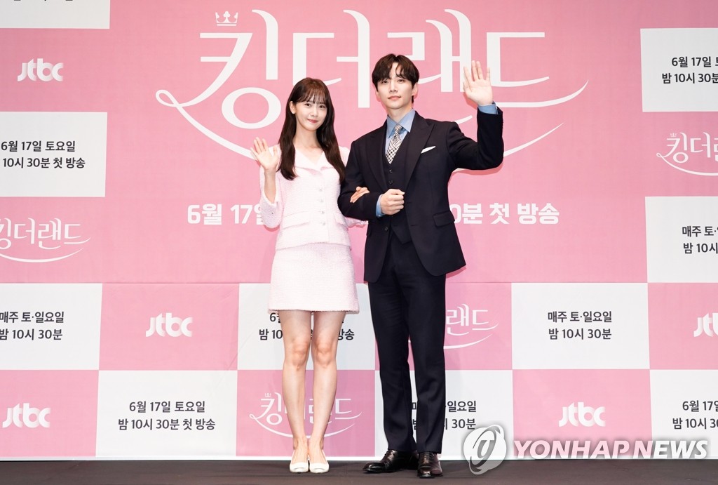| ▲ JTBC 드라마 '킹더랜드' 제작발표회 (서울=연합뉴스) 배우 임윤아와 이준호가 15일 서울 구로구 라마다호텔에서 열린 JTBC 토일드라마 '킹더랜드' 제작발표회에서 포즈를 취하고 있다. 2023.6.15 [JTBC 제공. 재판매 및 DB 금지] photo@yna.co.kr |