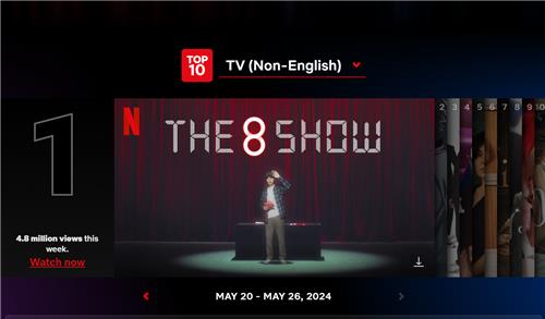 29일 넷플릭스에 따르면 '더 에이트 쇼'는 20∼26일 480만 시청 수(Views·시청 시간을 재생 시간으로 나눈 값)를 기록해 비영어권 TV 시리즈 부문 1위에 올랐다.