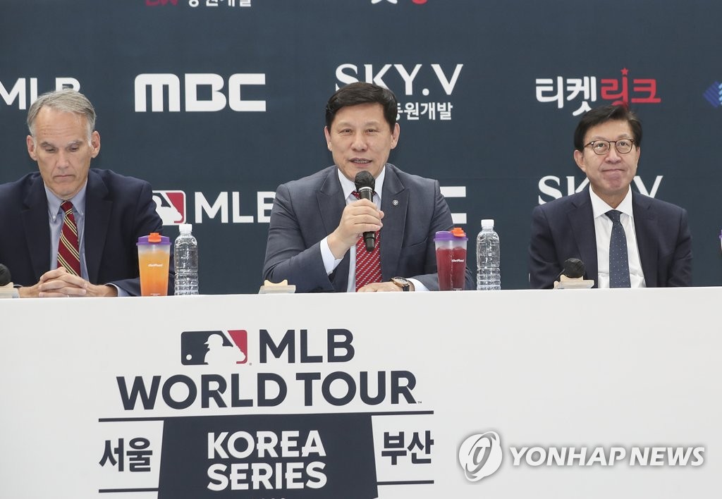 | ▲ 인사말 하는 허구연 KBO 총재 허구연 KBO 총재가 9월 19일 오후 부산시청 로비에서 열린 국내 프로야구 출범 후 최초의 메이저리그 공식 경기인 코리안 투어에 대한 공식 기자회견에서 인사말을 하고 있다. 11월 9일부터 16일까지 부산과 서울에서 개최되는 '2022 MLB WORLD TOUR : KOREA SERIES'는 MLB 선수단이 11월 9일 김해공항으로 입국한 후 11월 11일 부산 개막식을 시작으로 16일까지 대장정을 시작한다. [연합뉴스 자료사진] |