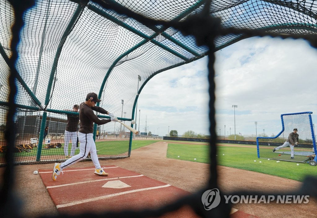 | ▲ 호쾌한 장타까지 기대하게 만드는 김하성의 타격 (피오리아[미국 애리조나주]=연합뉴스) 홍해인 기자 = 21일(현지시간) 미국 애리조나주 피오리아 스포츠 콤플렉스에서 열린 미국 메이저리그(MLB) 샌디에이고 파드리스의 스프링 캠프 훈련. 김하성이 배팅 케이지에서 타격 훈련을 하고 있다. 2023.2.22 hihong@yna.co.kr |