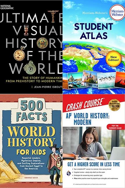 | ▲ 미국 유명 출판사들이 발행한 간행물들 사진 왼쪽부터 시계방향으로 내셔널지오그래픽사의 '눈으로 보는 세계의 역사…', 메리엄-웹스터의 '학생 지도책', 록리지 프레스 출판사의 '어린이를 위한 세계사: 500가지 사실', REA 발행 '세계사'. [반크 제공] |