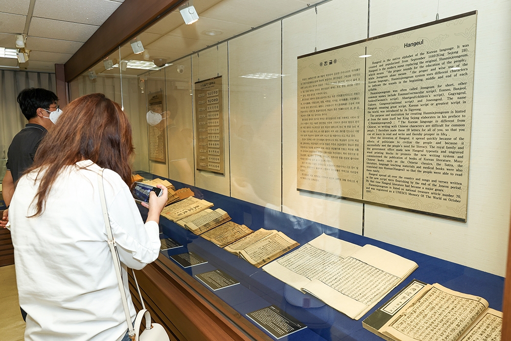 주요 전시품은 1489년(성종 20년)에 윤호·임원준·허종 등이 편찬한 한글 의학서 '구급간이방'(救急簡易方), 13세기 구결(口訣) 표기 '능엄경', 간경도감 간행 '선종영가집'(禪宗永嘉集)과 '몽산화상법어약록'(蒙山和尙法語略錄), '언해태산집요'(諺解胎産集要), '사성통해'(四聲通解) 등이다.