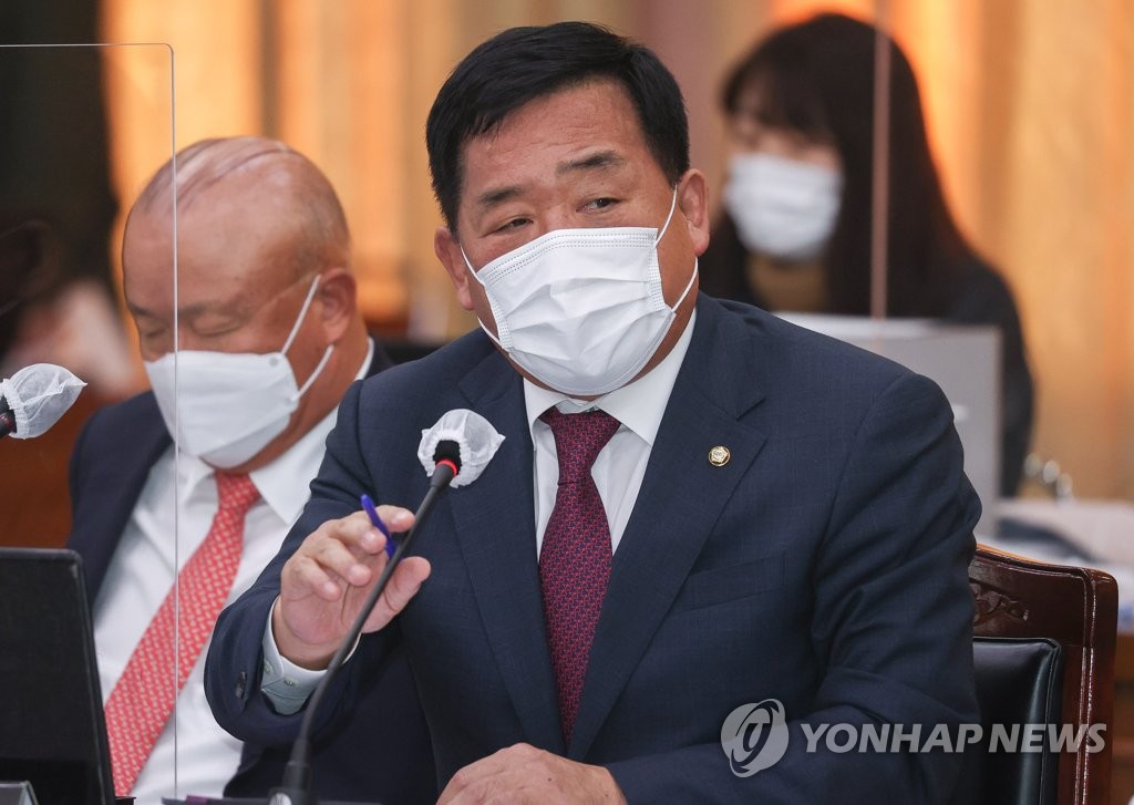 ▲ This file photo taken on Oct. 20, 2021, show Rep. Park Seong-min speaking at the National Assembly in Seoul. (Pool photo) (Yonhap)