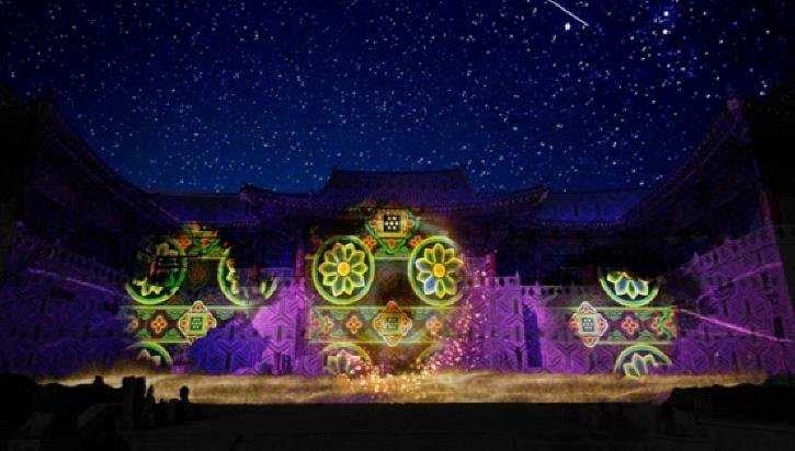 '화엄 세계로의 초대' 미디어 아트쇼는 다양한 디지털 미디어 기술을 활용한 야간 행사다.