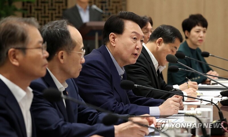 | ▲ President Yoon Suk Yeol (3rd from L) speaks during a regular meeting on the economy and public livelihood issues at the presidential office in Seoul on Aug. 31, 2023. (Pool photo) (Yonhap) |