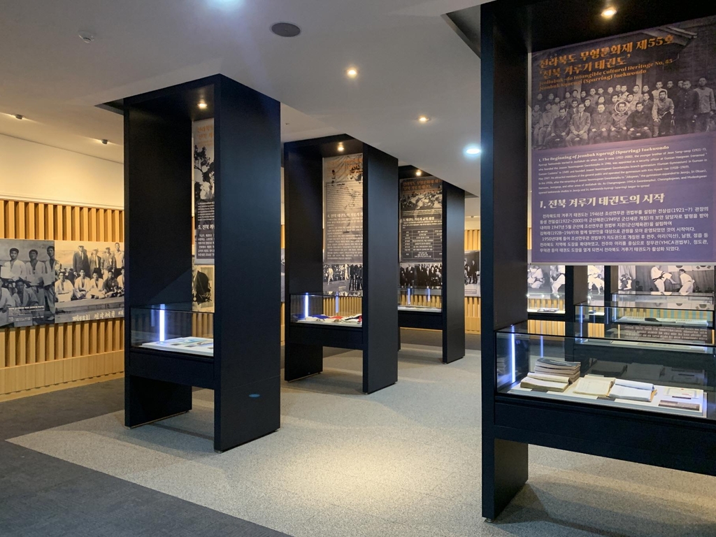 전북 문화재로 지정된 겨루기 때 사용한 대나무 보호구, 태권도 경기화를 주도한 고 전일섭 사범의 도복 등 전북 태권도의 역사를 보여주는 자료도 만날 수 있다.
