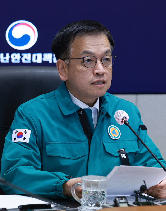 Acting President Choi Sang-mok speaks during a meeting of the Central Disaster and Safety Countermeasures Headquarters at the government complex in Seoul on Jan. 1, 2025, about measures to deal with the Jeju Air plane crash in the southwestern county of Muan on Dec. 29, 2024.(Yonhap)