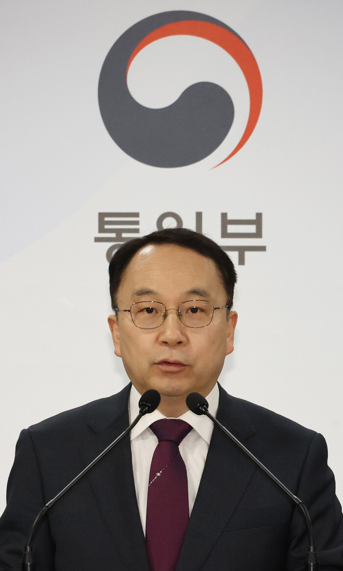 Koo Byoung-sam, spokesman of the unification ministry, speaks during a press conference at the government complex in Seoul on Feb. 3, 2025. (Yonhap)