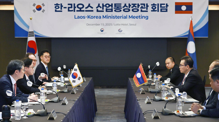South Korean Industry, Trade and Energy Minister Kim Jung-kwan (2nd from L) holds talks with his Laotian counterpart, Malaithong Kommasith (3rd from R), in Seoul on Dec. 15, 2025, in this photo released by the industry ministry. (PHOTO NOT FOR SALE) (Yonhap)